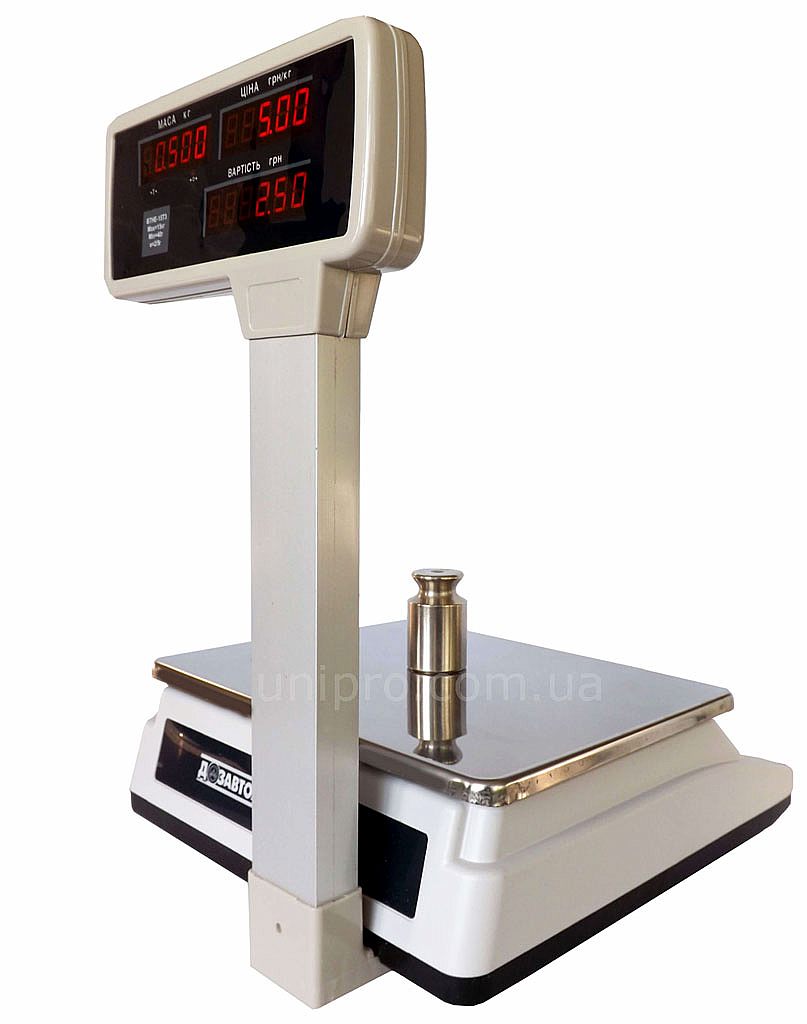 - Індикація: двостороння LED (маса, ціна, вартість)