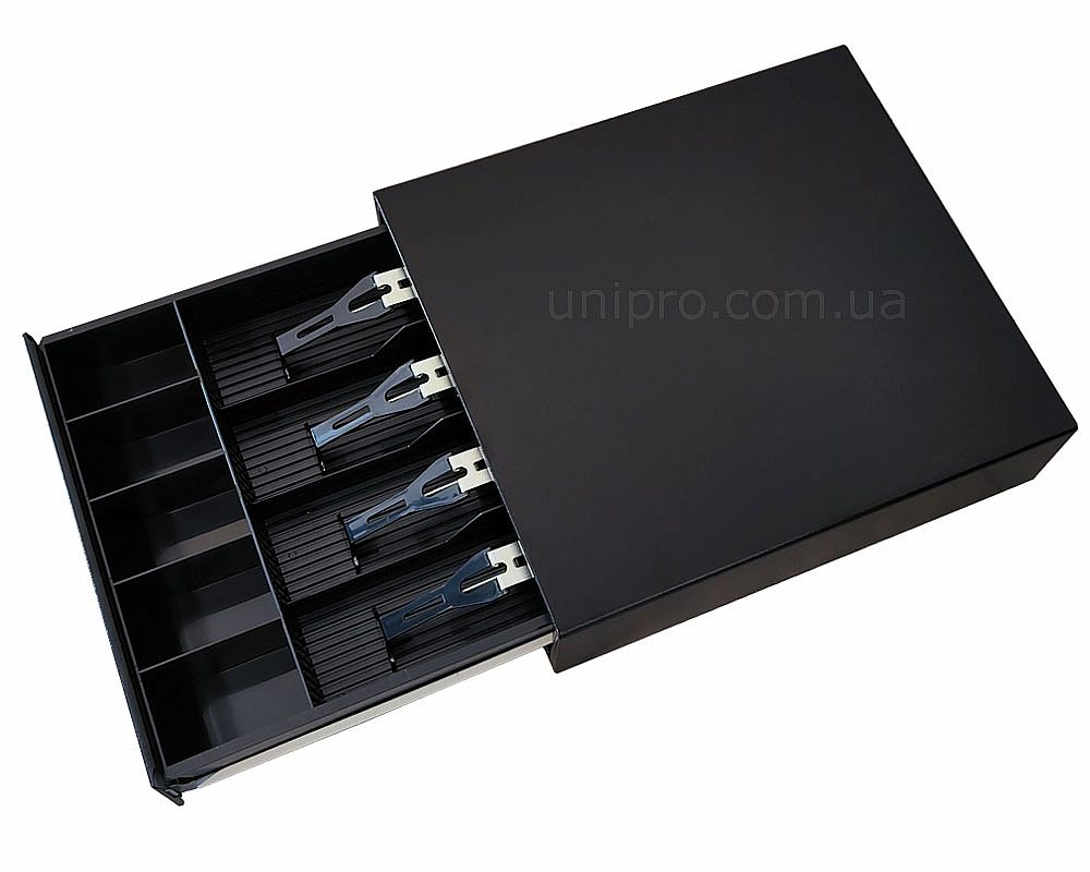 Надежный, металлический выдвижной денежный ящик BDR-100H. Может открываться как программно, управляющим сигналом, так и механически.